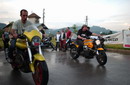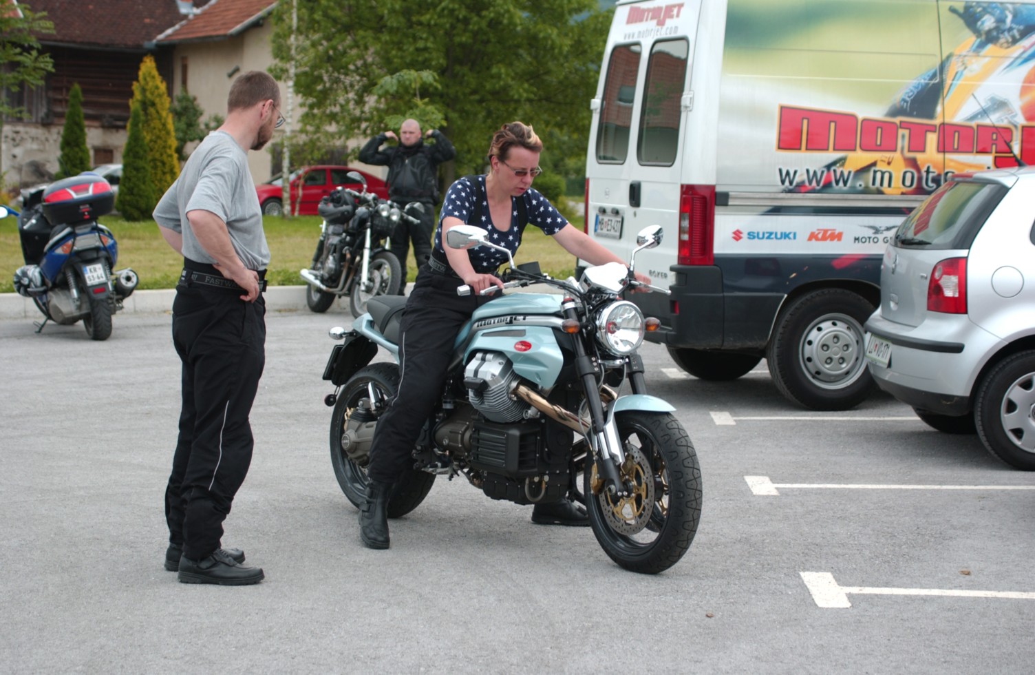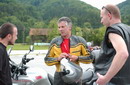 Na velikem parkirnem prostoru ob hotelu, se je čez dan zbralo okrog 200 motornih koles in približno 300 udeležencev. Veliko veselja ob ponovnih srečanjih starih znancev je ustvarilo tisto posebno vzdušje, polno pogovorov o motorjih in še čem in radovedno ogledovanje vseh , v več vrst lepo parkiranih motornih koles. Seveda ne smem pozabiti na goste iz tujine, ki jih je bilo res veliko, največ, kot običajno Italijanov, prišli pa so tudi iz Hrvaške, Madžarske, Švice. Sam sem se najbolj zadrževal okrog Quot, letos jih je bilo največ, kar pet, tu so bili še eksotični Centauri, največ Californij, Nevad, nove Breve, Griso, prekrasen Andrejev Sport , pa tudi nekaj drugih znamk. Omeniti velja tudi obisk predsednika MG World cluba, Braneta Legana, pa Benke, trgovca Sostana in njegove ekipe, skratka naše srečanje očitno postaja vedno bolj pomembno.