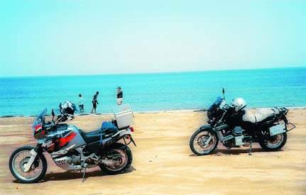 vode. Motor rije po pesku, nikakor ga ne uspem obdržati v smeri. Fadel oceni, da sva