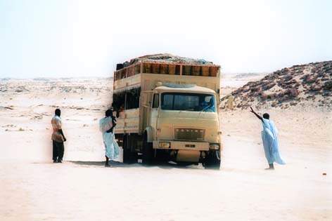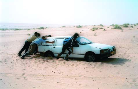Na mavretanski strani se prvič srečamo s peskom. V državo lahko pridemo le preko visokega