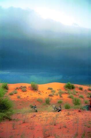 Šotorili smo v vadiju, suhem rečnem koritu, ko se je nenadoma stemnilo. Bliski so parali
