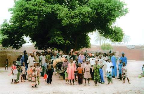 trg. Obstopijo nas visokorasli vaščani, črni kot oglje in nas radovedno otipavajo.