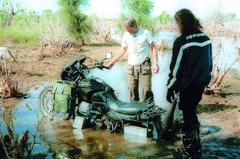 obmejno mesto v Maliju. Na sipkem pesku se motor divje zavrti in že sva na tleh. Z Metko sva