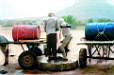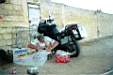 Najin Moto Guzzi, je obložen s prtljago in z dvema kantama. Ena je polna bencina, druga pa