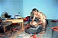 brez vsake opreme, obkroženih z meter visokim zidom. V soju ogjnev in baterijskih svetilk,