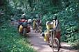 Kolesarji za prehod reke rabijo